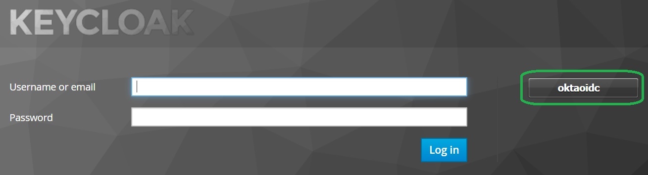 You open the login page and you will surprise! We have the additional button that allows us to login to Keycloak using Okta OpenID Connect provider: